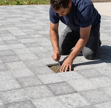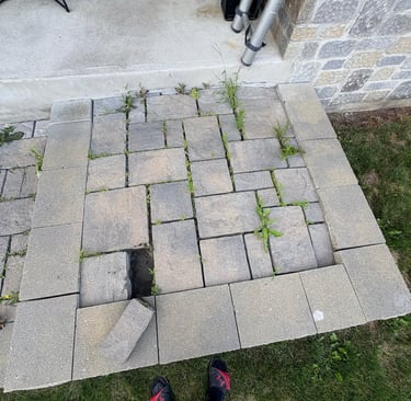 Un allée en pavés soigneusement nettoyée, révélant ses couleurs naturelles et offrant un accueil chaleureux à chaque visite.
